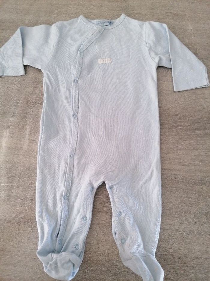 Pyjama pieds couvert, longues manches Bleu clair avec étoiles blanches Pression du col jusqu'aux pieds Les p'tits babies - new born