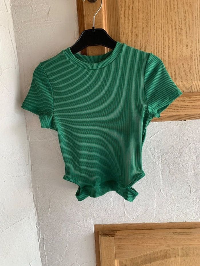 T-shirt côtelé vert Ajouré sur les 2 côtés Taille XXS Peu porté
