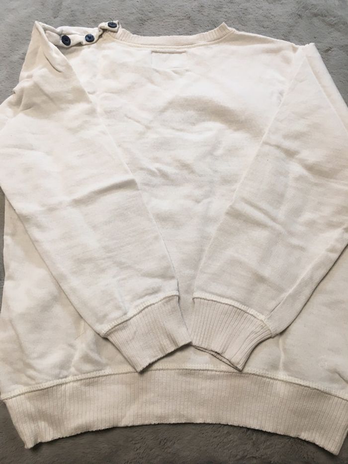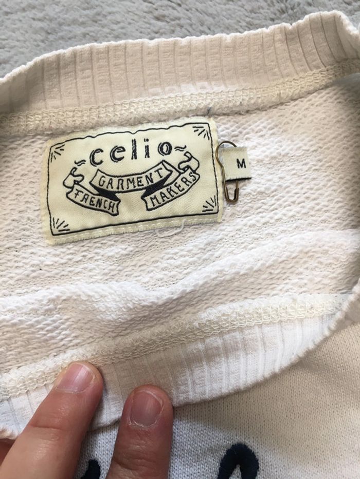 pull Celio blanc avec inscription bleu marine 3 boutons au col taille M bon état avec une petite tache au bas montrée sur une photo et quelques petites bouloches remise activée sur lot envoi uniquement mondial relais ou relais colis #framboise83homm