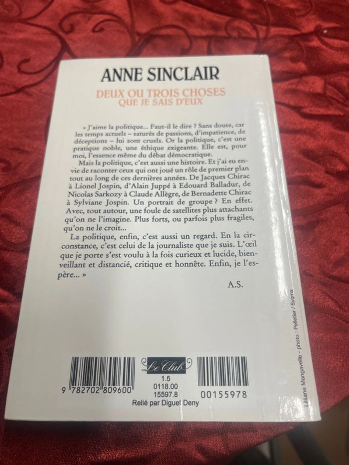Livre d’Anne Sinclair, deux ou trois choses que je sais d eux. État correct