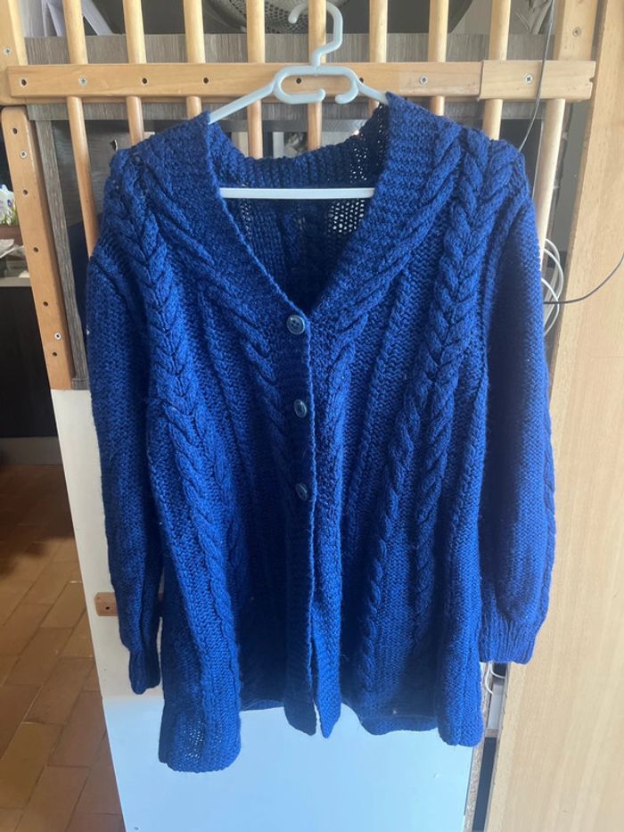 Veste en laine, faite, mains, bleu marine, taille à peu près 42 44 voire un peu plus
