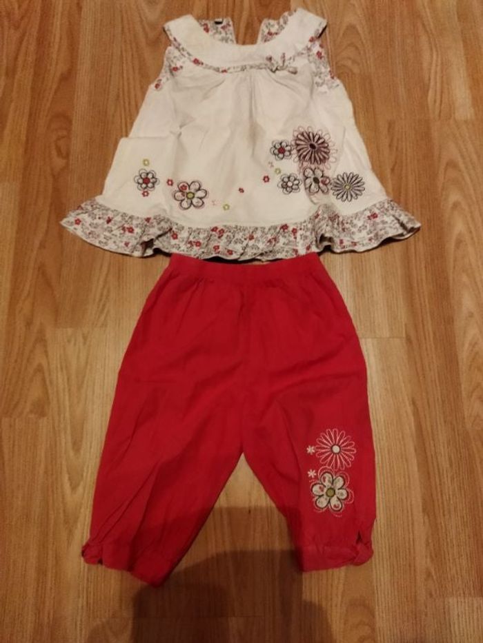 Ensemble chemisier sans manches et pantalon 23 mois présence d'une tâche en haut à gauche près du cou