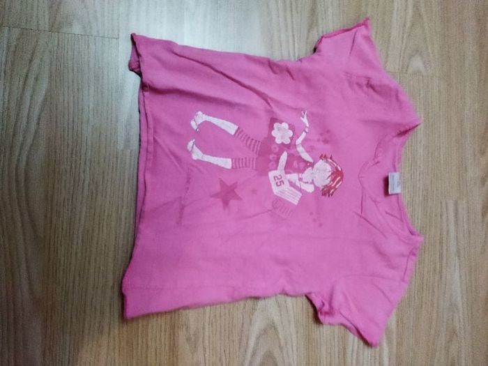 Tee-shirt 3 ans rose manches courtes dessin devant un peu effacé