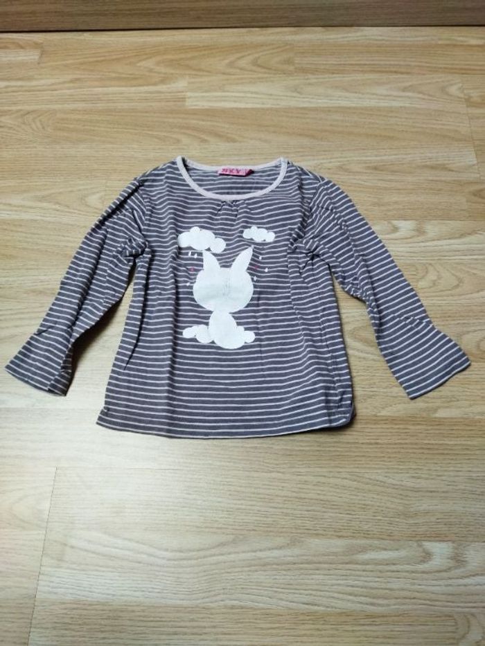 Tee-shirt NKY 4 ans gris avec rayures blanches manches longues motif devant un peu effacé