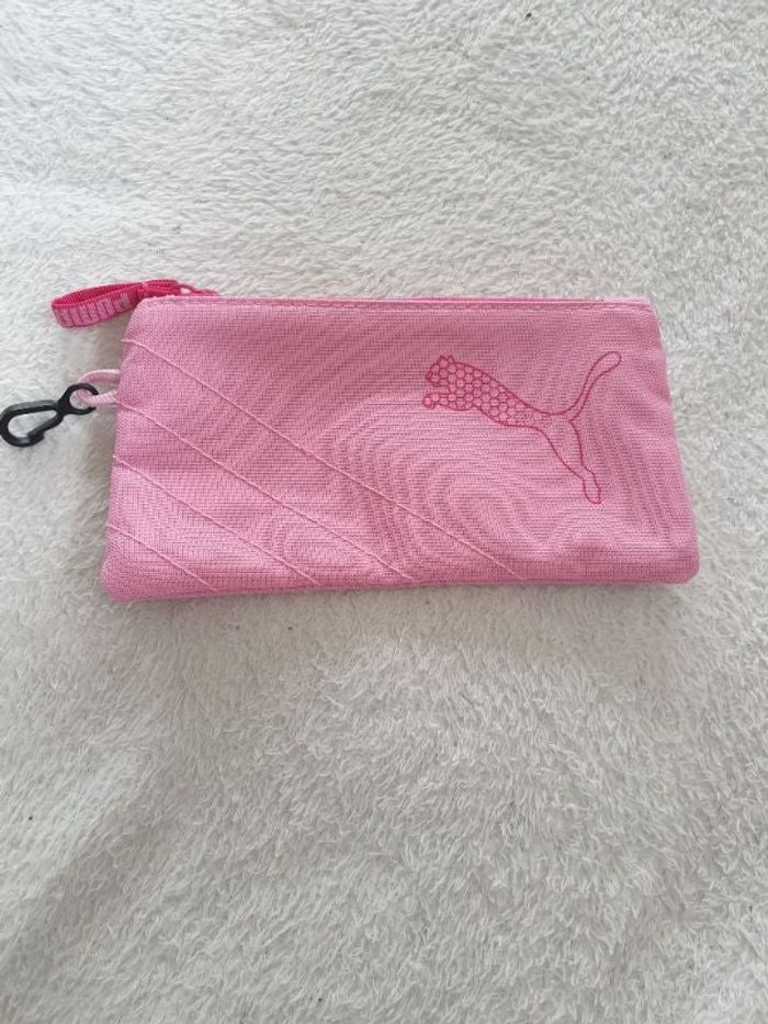 Trousse rose avec fermeture éclair. Puma. Elle mesure environ 19cm de long et 10cm de haut. Parfait état
