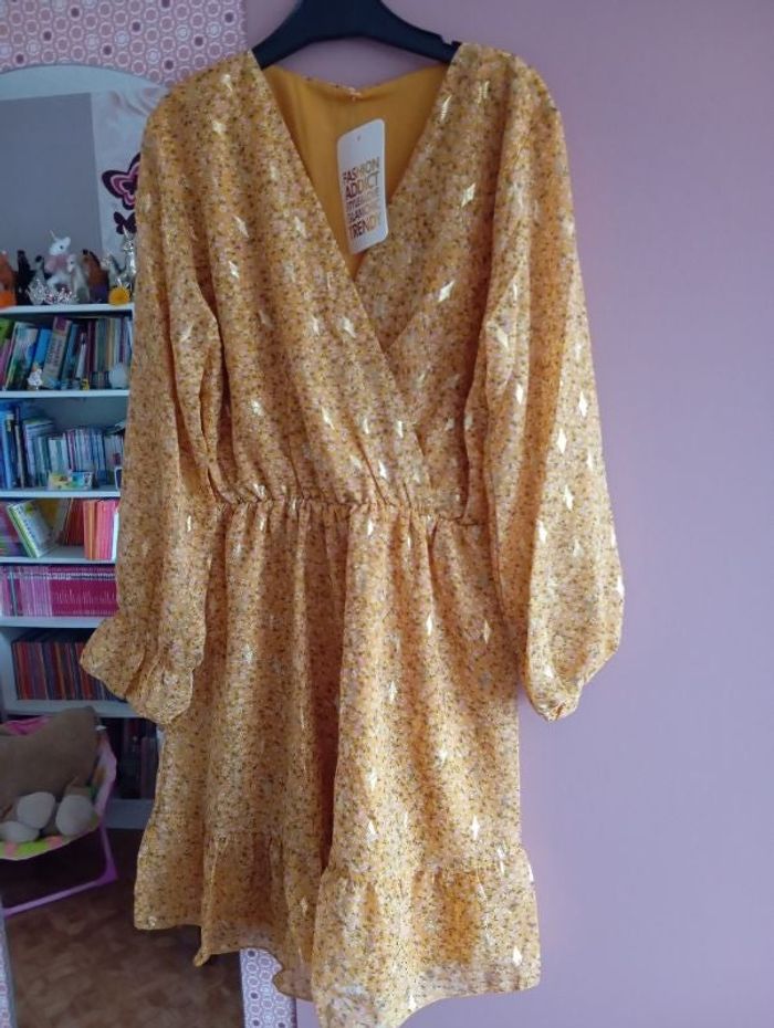 Robe légère, élastique et fleurie, avec détails doré. Taille 12 ans, neuve étiqueté.