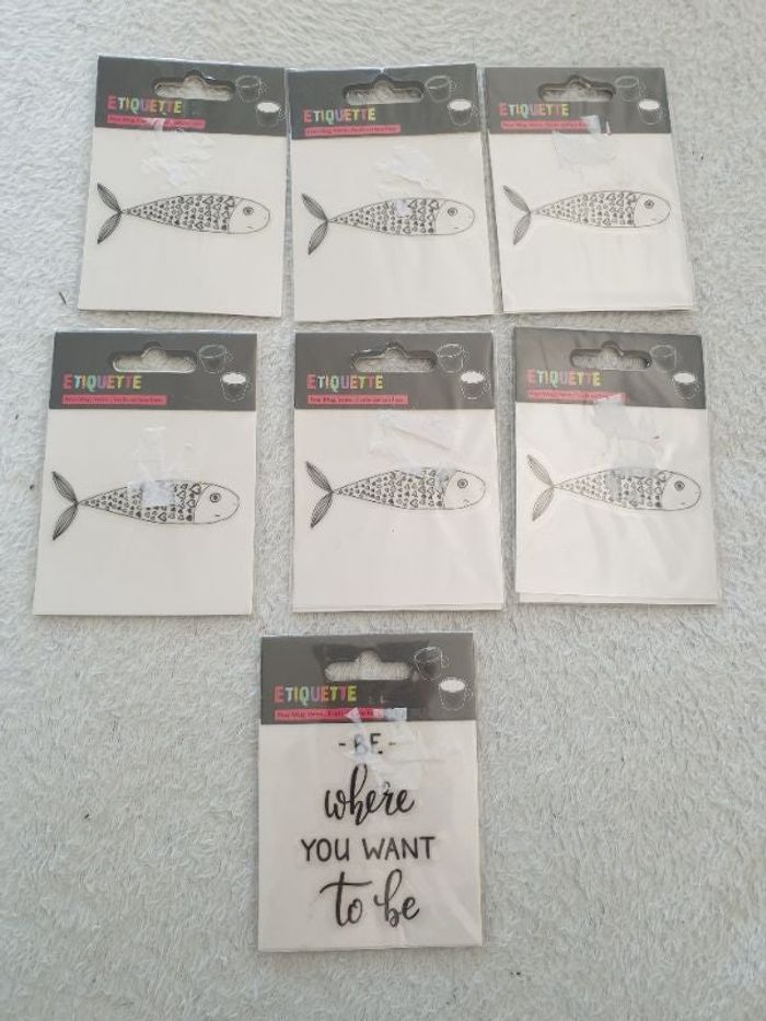 Lot de 7 étiquettes à coller sur des verres, des tasses, des assiettes... Ou toutes surfaces lisses. Neuves, jamais déballées.