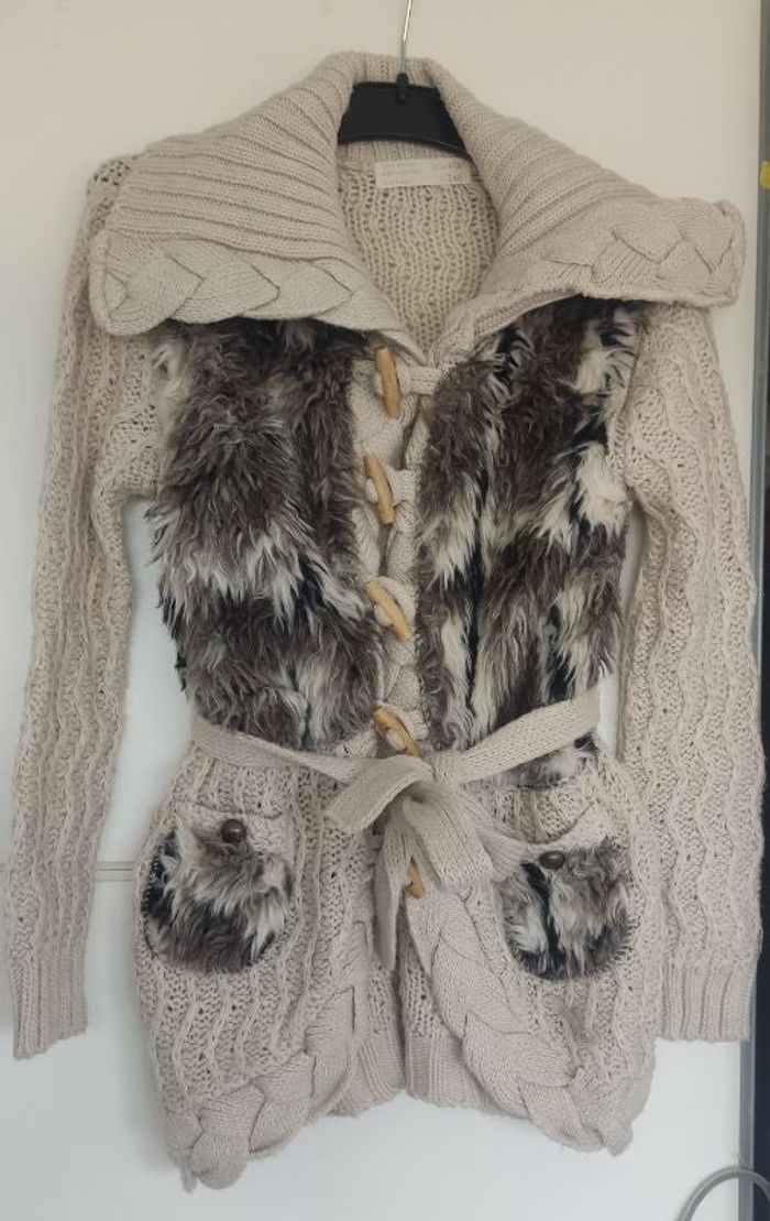 Gilet chaud, marque Zara, taille 9-10 ans, avec fausse fourrure + ceinture. Très bon état sans défaut (peu porté).