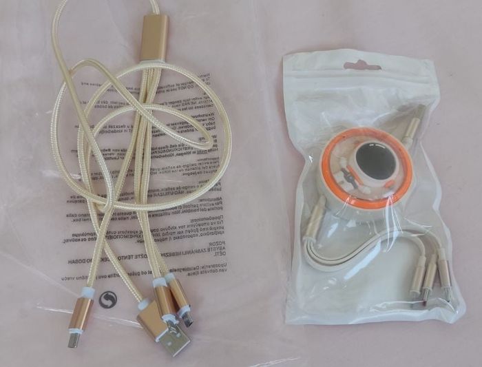Lot câble de chargeur, 3 embouts différents. Neuf jamais utilisé. 3€ les 2.