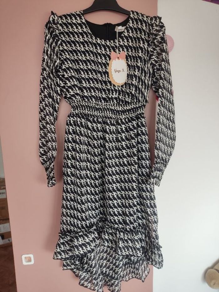 Robe a motifs, asymétrique... court devant et plus long derrière. Marque yoyo S. Taille 12 ans, neuf avec étiquette.