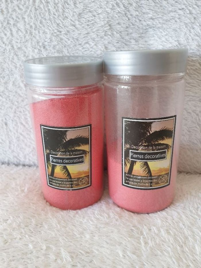 Lot de 2 pots de sable rose. L'un est plein et l'autre à moitié plein. Soit environ 450grs de sable.