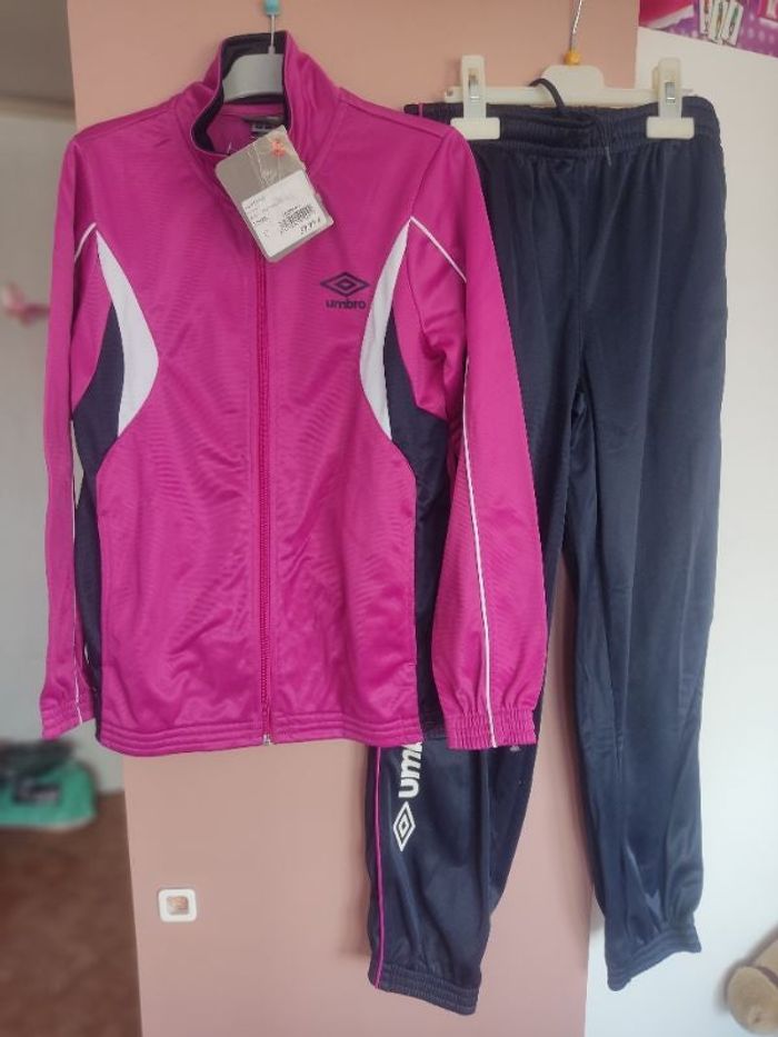 Ensemble de sport Umbro, rose/bleu marine, taille 12-13 ans, neuf avec étiquette (léger défaut, voir photo). Prix d'achat 39,99€