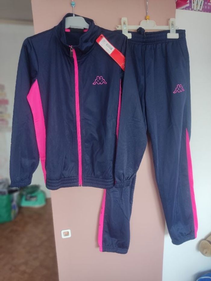 Ensemble de sport Kappa rose/bleu marine, veste et pantalon, taille 12 ans, neuf avec étiquette. Acheté 39,99€.