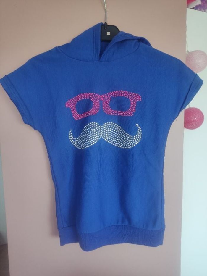 Pull a capuche sans manches, en bon état (manque un strass sur le dessin, pas d'autres défauts), taille 8 ans.