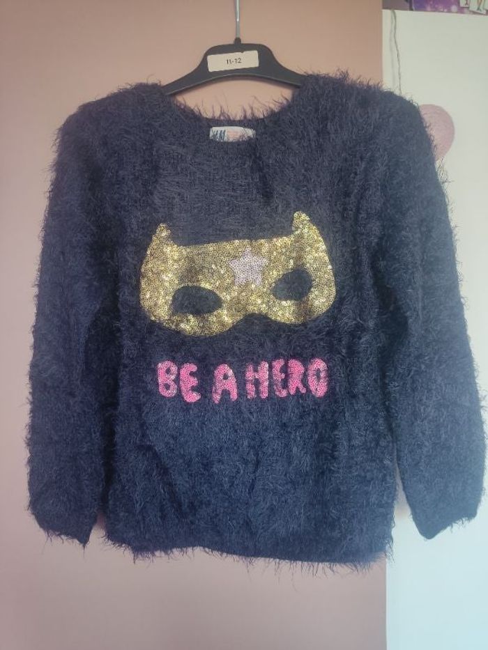 Pull moumoute bleu marine, tout doux, marque h&m, taille 6-8 ans, très bon état sans défauts.