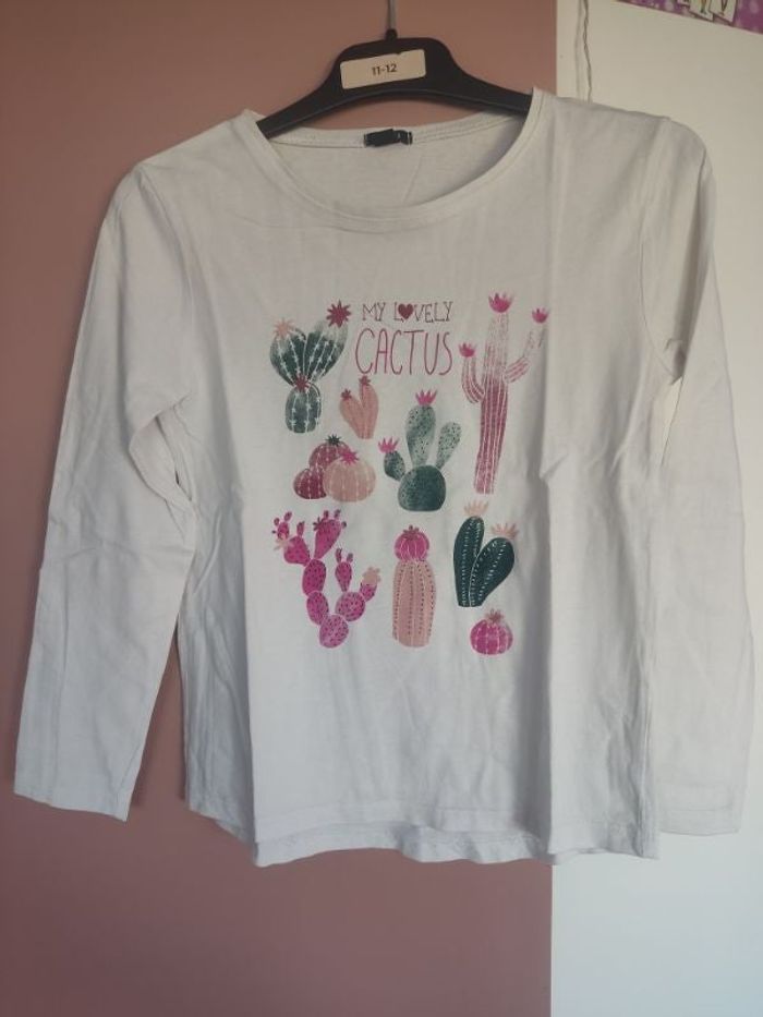 Tee shirts manches longues, motifs cactus, marque Kiabi, taille 8 ans, très bon état sans défauts.