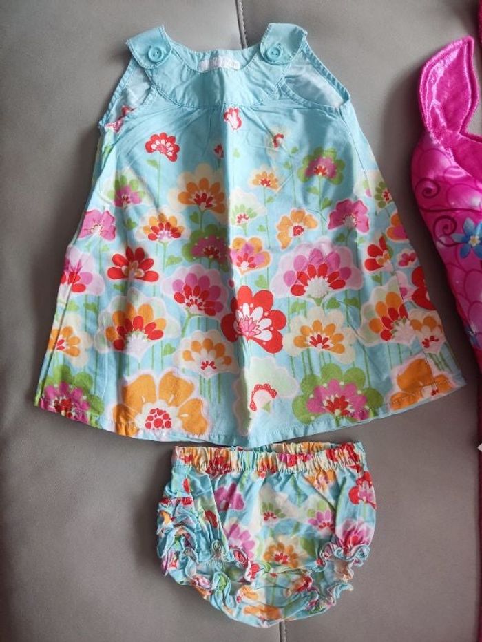 Jolie robe fleurie, avec culotte assortie. Marque h&m, taille 9-12 mois, en très bon état sans défauts. Je donne avec un bandeau assorti en bon état.