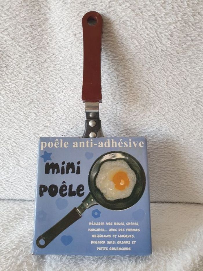 Mini poêle anti adhesive. Forme fleur. Pour faire des œufs, pancakes, crêpes. Neuve jamais déballée. Elle mesure environ 26cm (manche compris) de long et 11cm de large