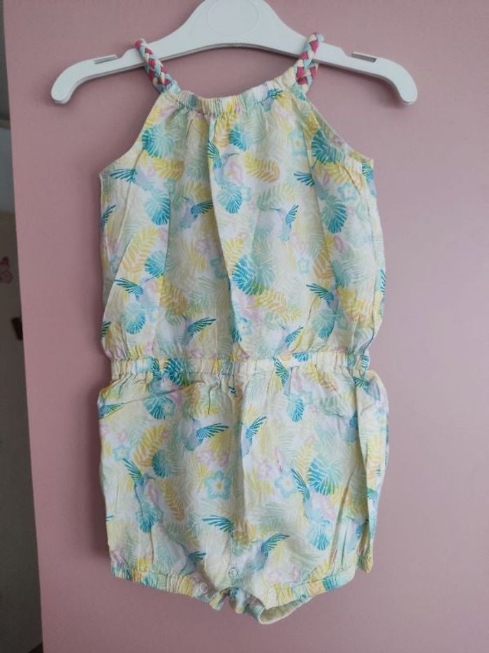 Combinaison short a fleurs, marque Creeks, taille 18 mois, très bon état sans défauts (porté que 2 fois).