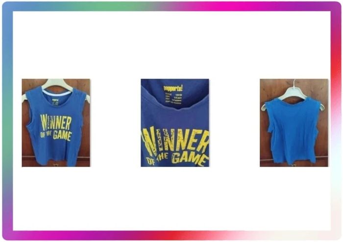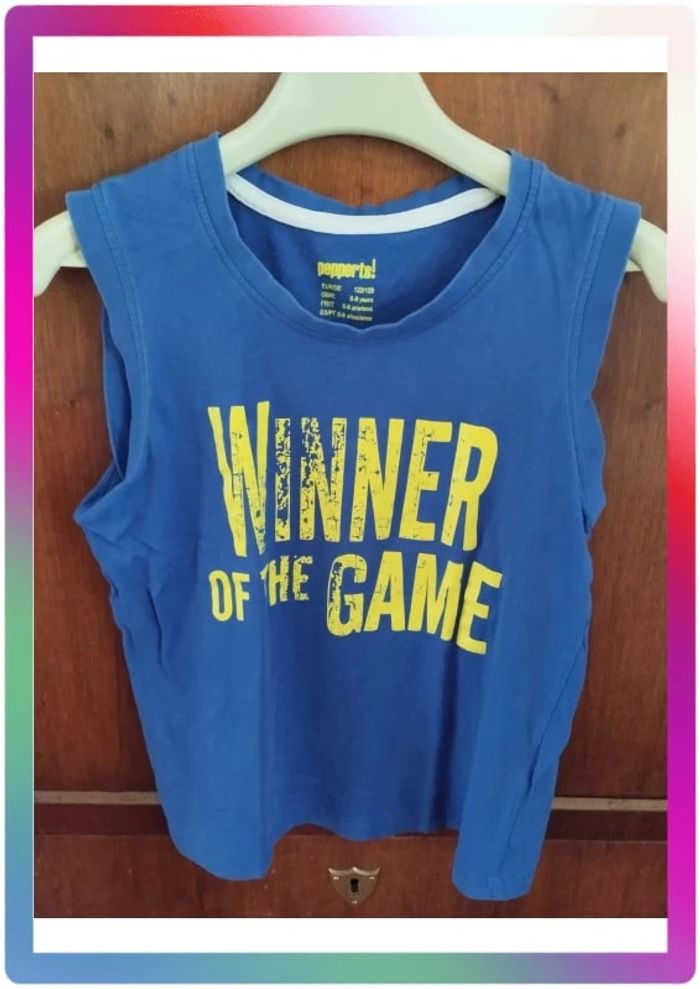 🎽Débardeur 🎽Couleur : bleu 🎽Inscriptions en jaune : Winner of the Game 🎽Marque : Pepperts ! Veuillez consulter mes autres articles, je fais un grand tri. 😉 #aurel072638_7ans ✨✨ ------------------------------- ✨✨ - 10% dès 2 articles choisis ! Puis - 15 % pour 3 Et 20 % de réduction sont appliqués dès 5 articles achetés ! ✨✨ ------------------------------- ✨✨