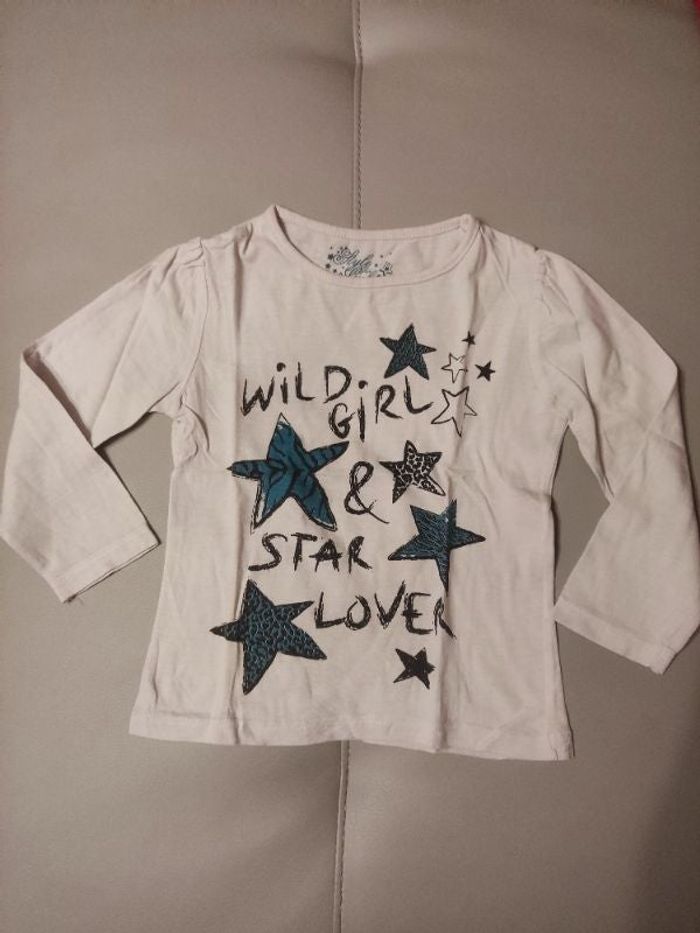 Joli tee shirt a motifs et inscription, marque in extenso, taille 3 ans, en très bon état sans défauts.