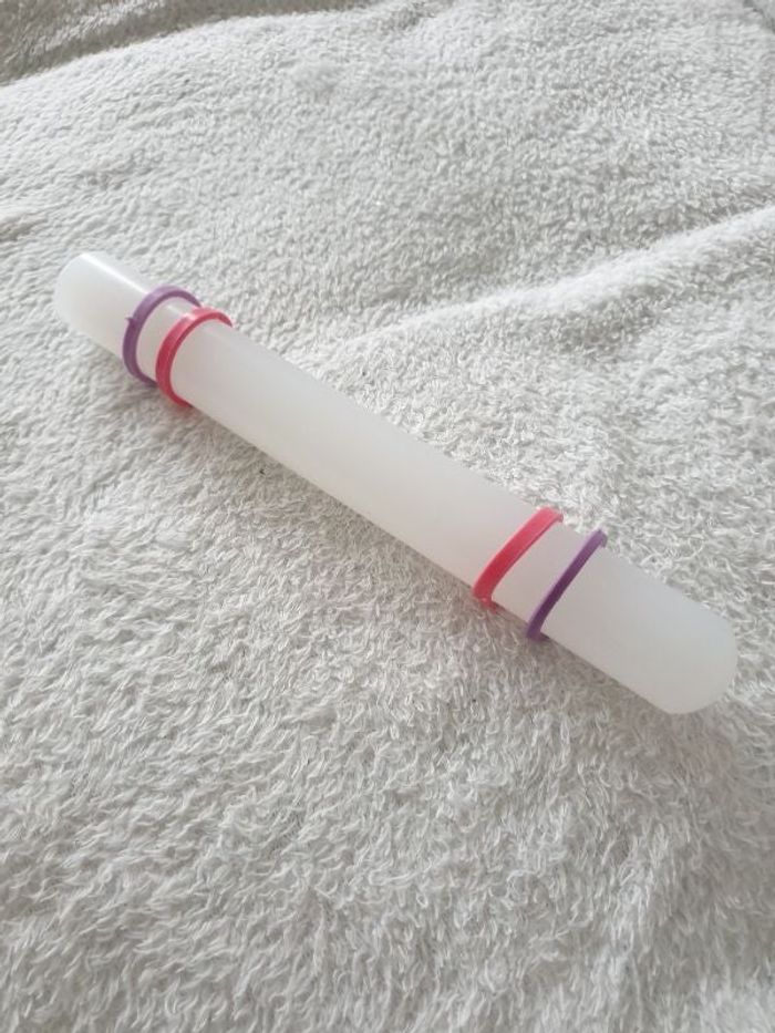 Rouleau patisserie en acrylique anti adhesif. Il mesure environ 23cm et diamètre 2,5cm. Très peu utilisé