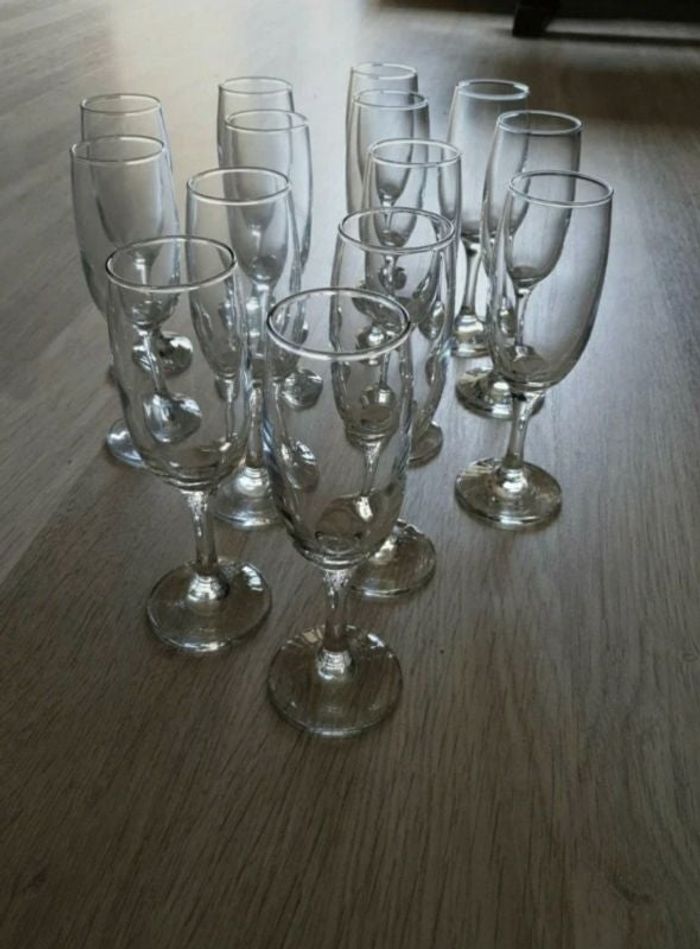 Lot de 14 flûtes. Hauteur 19cm. Parfait état. Utilisées une seule fois. Je ferai un emballage en protégeant un maximum les verres.