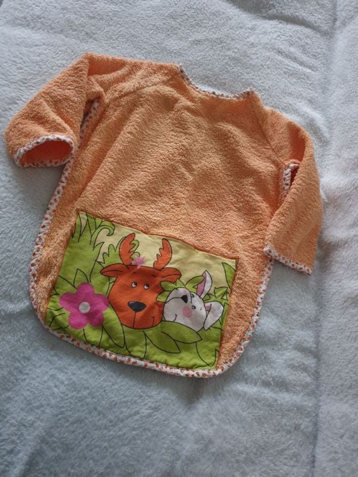 Bavoir pour bébé et enfant. Manches longues. Il mesure environ 35cm. De long. Attache avec un nœud dans le haut du dos.