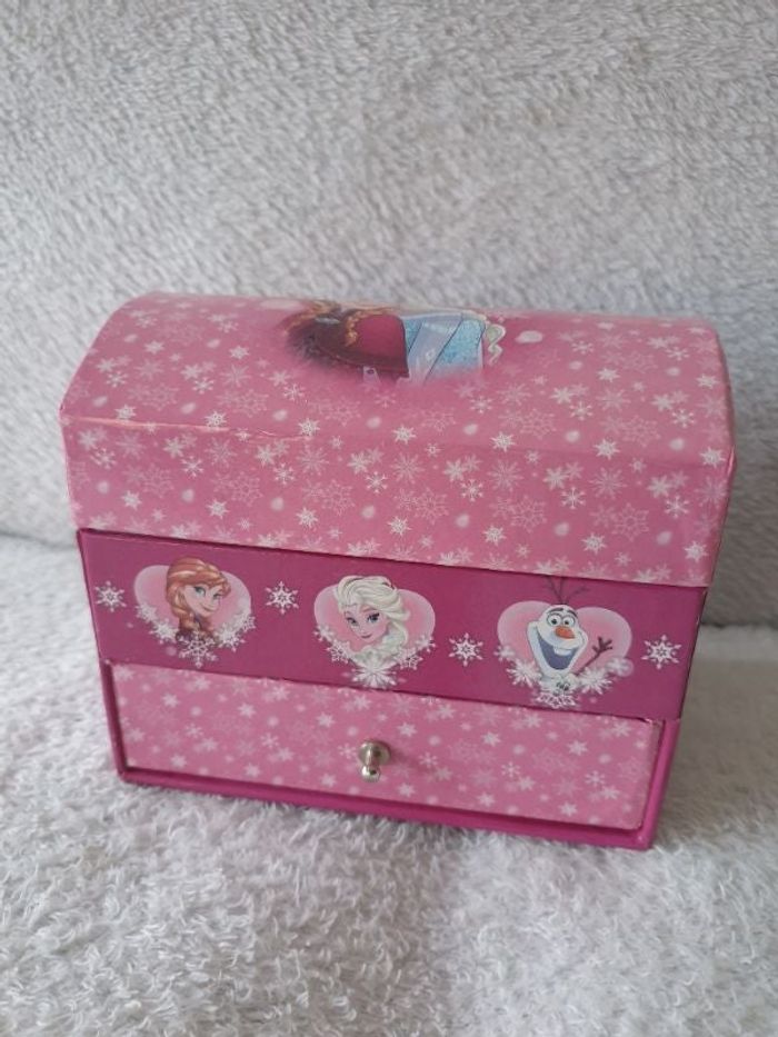 Boite a bijoux Reine des Neiges. Elle mesure environ 14x10cm et 12cmde haut.