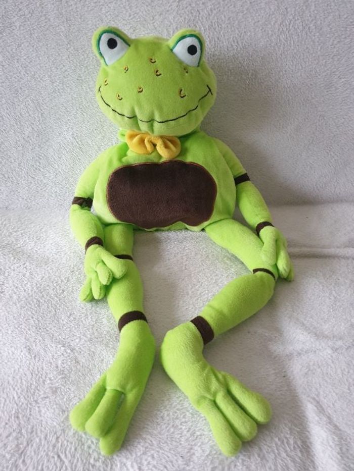 Range pyjama grenouille vert. Il mesure environ 90cm. Grande poche arrière pour ranger des objets ou un pyjama. Parfait état.