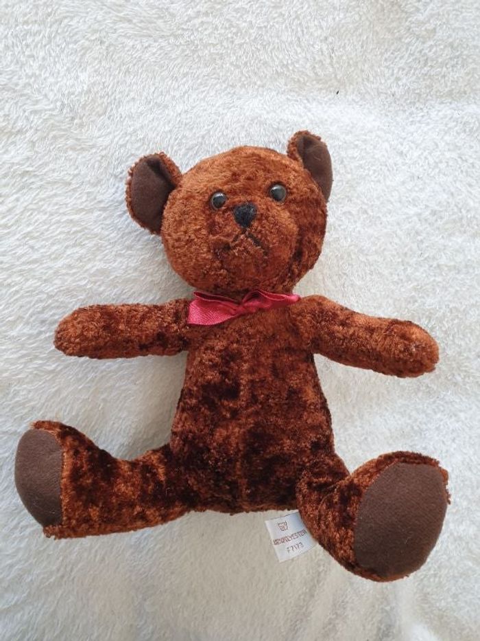 Ourson en peluche. Lbp Magnet. Il mesure environ 20cm. Avec un nœud bordeaux. Parfait état.