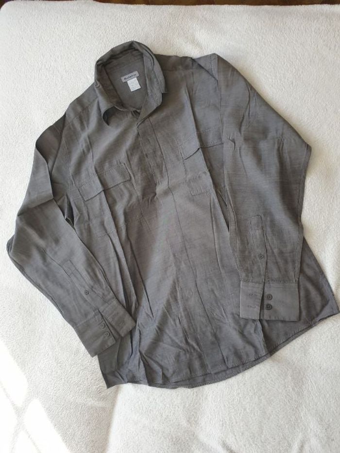 Chemise homme manches longues. 37/38. Grise, touché satin. Avec 2 poches.