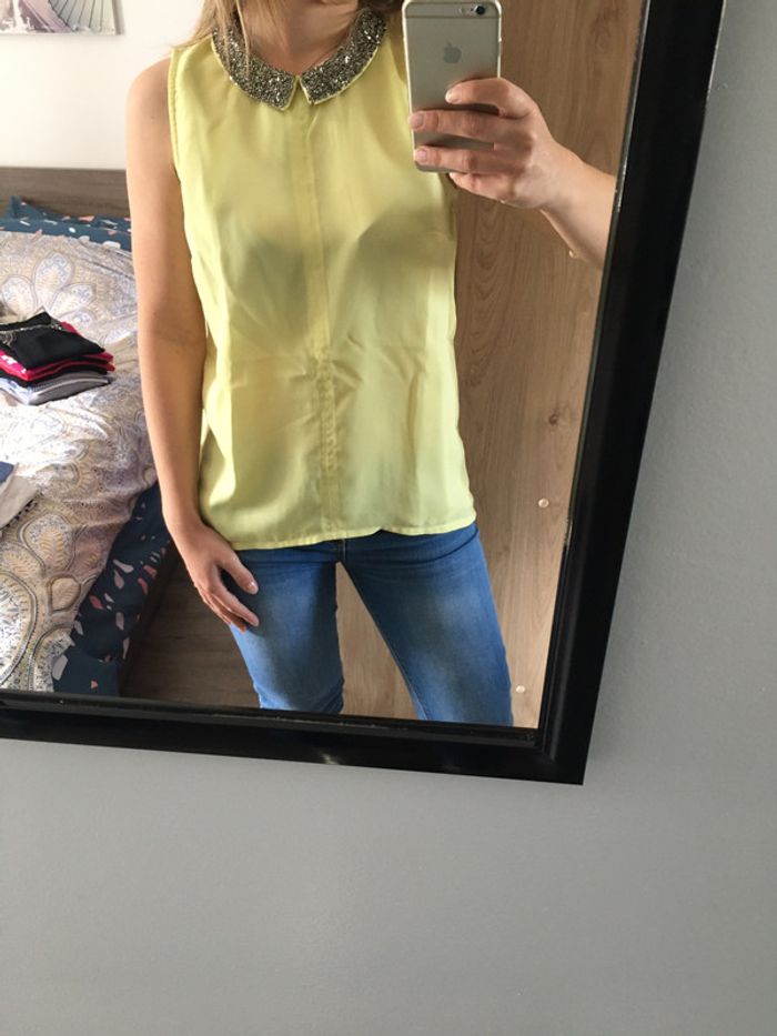 t-shirt jaune avec le col Claudine