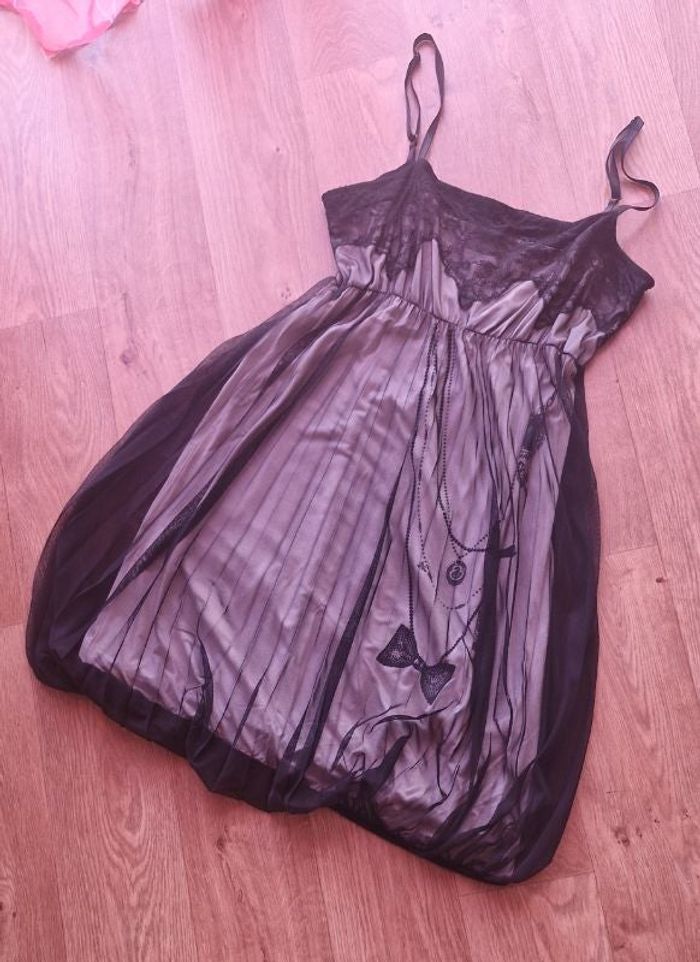 #Mi_laine44femme Robe à bretelles fine, réglables. De coloris noir sur le voile et doublure grise. Marque Le monde est à vous Doublure avec motifs dessus et cousu avec le voile. Forme boule sur le bas de la robe. Jolie dentelle sur le haut de la robe devant comme derrière. Taille 44 Vêtements premières mains et réduction automatique dès le 2eme article