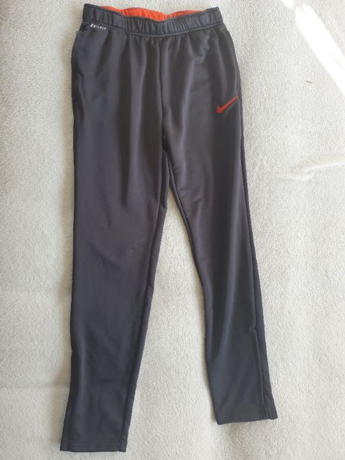 Pantalon de jogging ou survêtement M. Gris et orange. Ajustable a la taille avec un lacet. Élastique à la taille. Fermetures éclairs en bas des jambes.