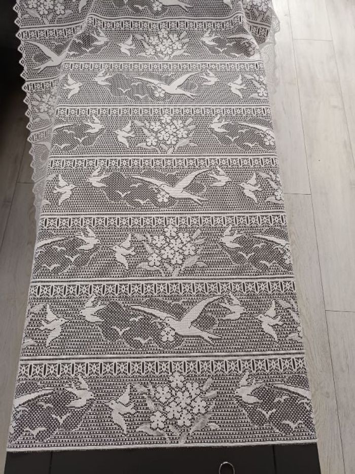 Paire de voilage blanc motifs oiseaux. 90 x150cl environ. Ajustable en longueur tous les 15cm environ. Une autre paire disponible mais plus petite car accros par endroit demander plus d'informations si besoin