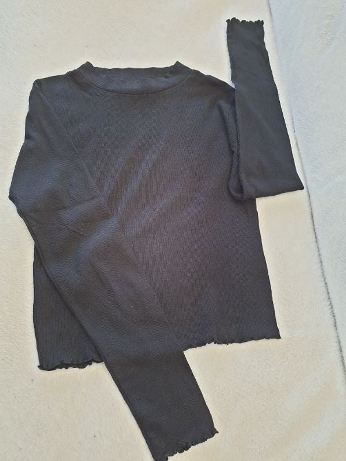 Petit pull noir. S. Fin. Top en mailles cotelees.