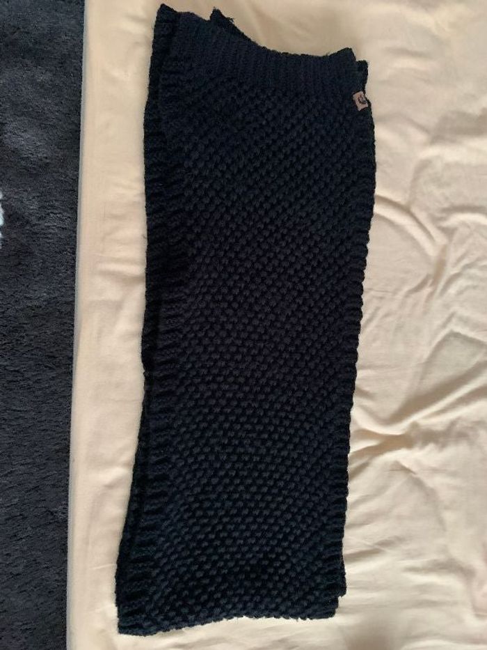 Écharpe noire de 2m70 de long sur 28 cm de large environ. de chez Billabong. La photo avec la mesure en longueur a été prise avec l'écharpe pliée en 4.