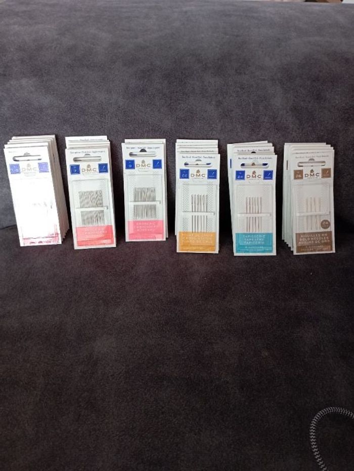 Différents lots d'aiguilles couture, broderie, point de croix, tapisserie. Vendus à l'unité 2€. Taille 1-5 couture Taille 7/9 broderie Taille 22/26 point de croix Taille 24 tapisserie