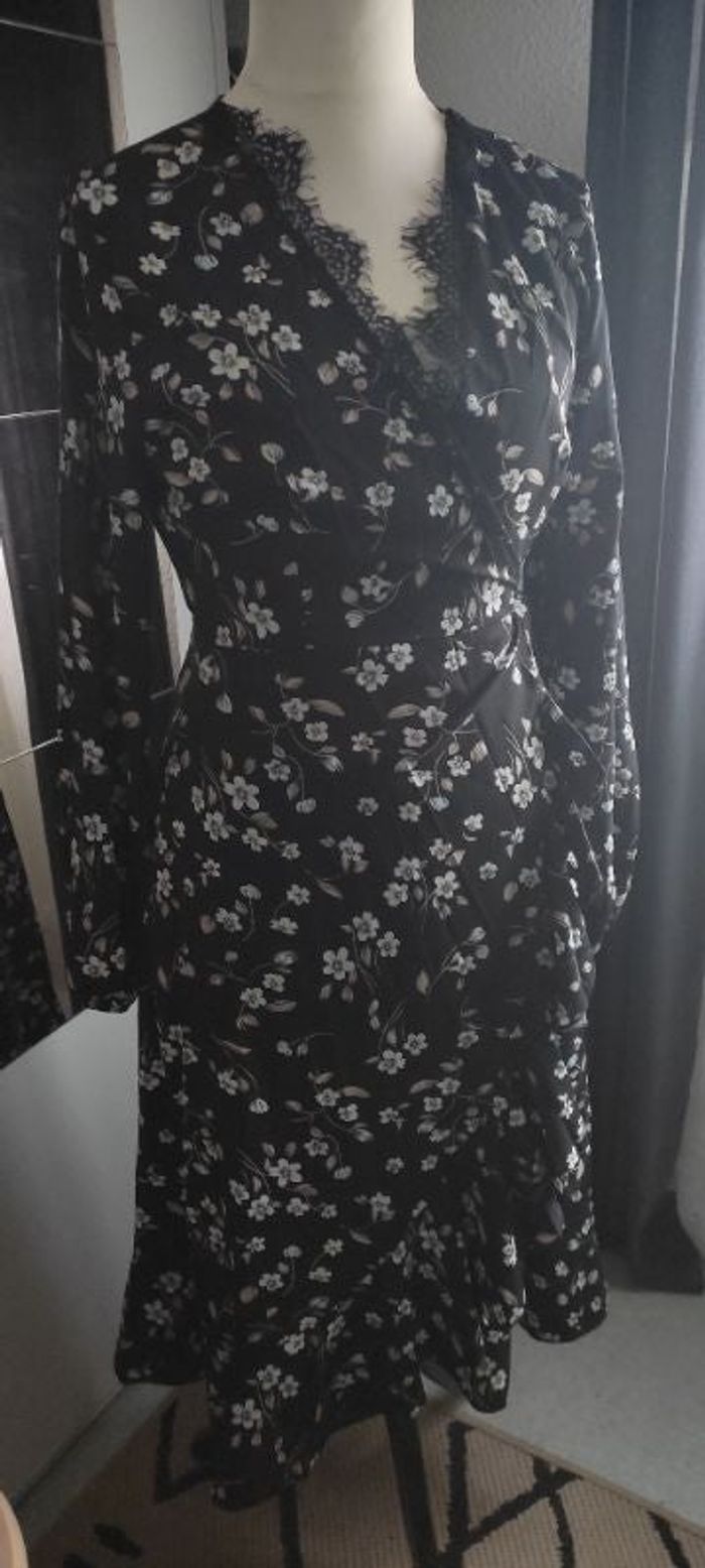 Système d'attache croisée . Col V dentelle. Volant au bas. Élastique finition manches longues Taille L 40/42