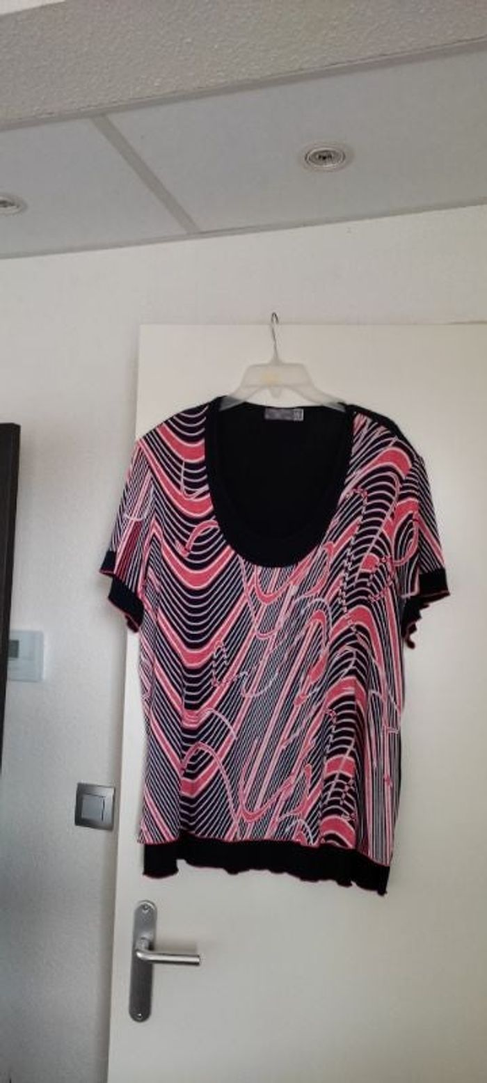 Décolleté arrondi, épaulettes. Bleu marine, saumon et blanc Fluide avec elasthanne, fabriqué en France . Avec doublure intérieure.