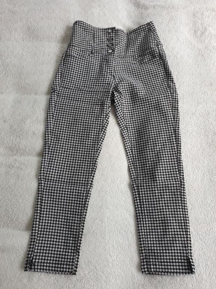 Pantalon 3/4 taille haute. Taille 36. A carreaux. Nombreuses poches et boutons. Tres souple.