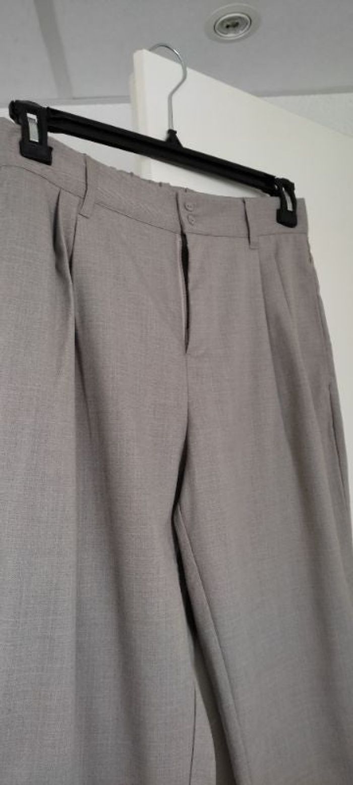 98 % polyester 🪡 2% elasthanne 📏 Longueur entrejambe 64 cms Ouverture zip sous patte + 2 petits boutons, 2 poches plaquées de chaque côté, à pinces devant et taille élastique derrière Pour le printemps et l'automne