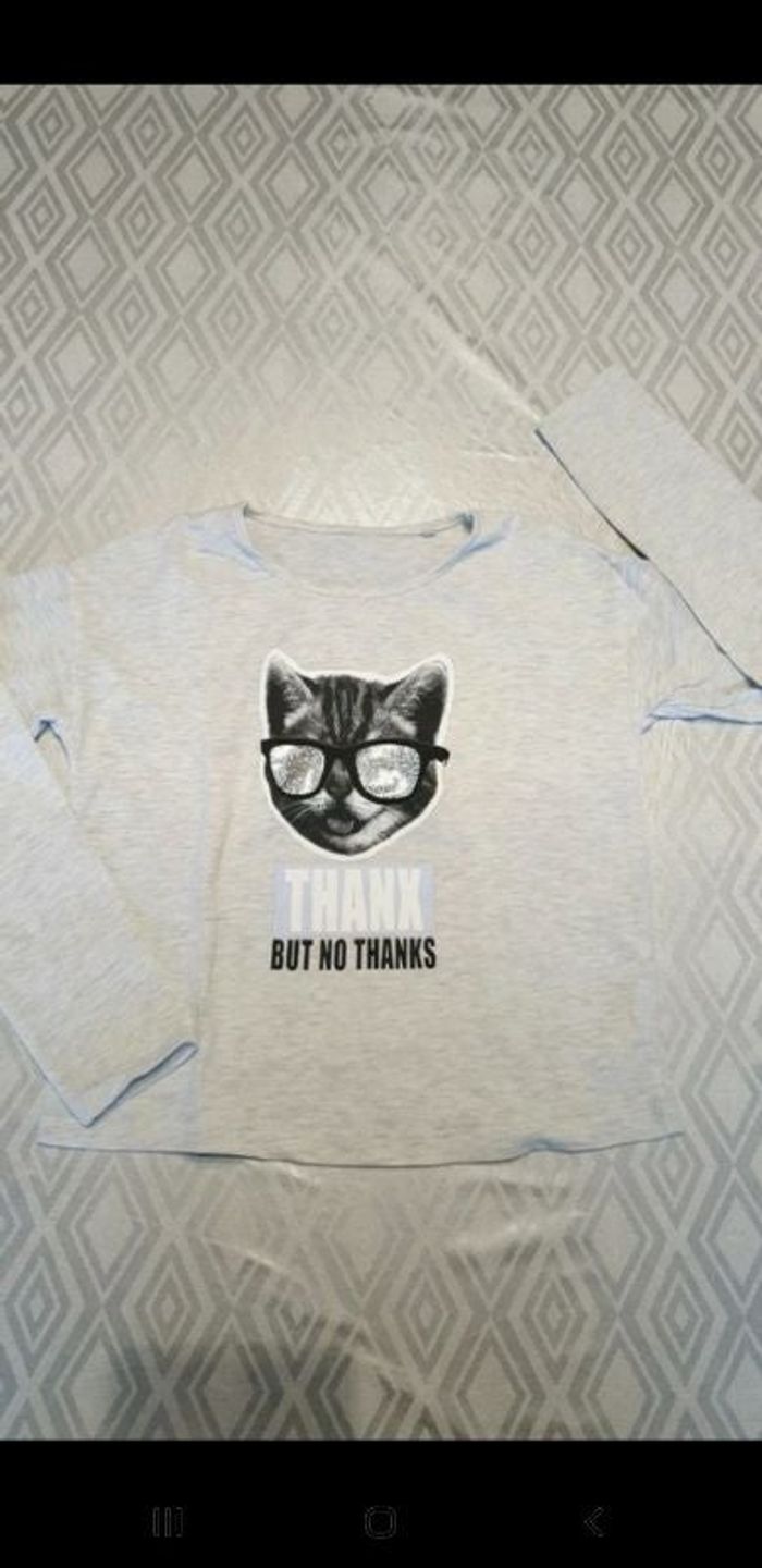 T-shirt manches longues. Tête de chat a lunettes de soleil. 8 ans.