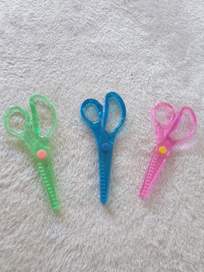 Ensemble de 3 paires de ciseaux enfant. Pour faire des découpes crantés.