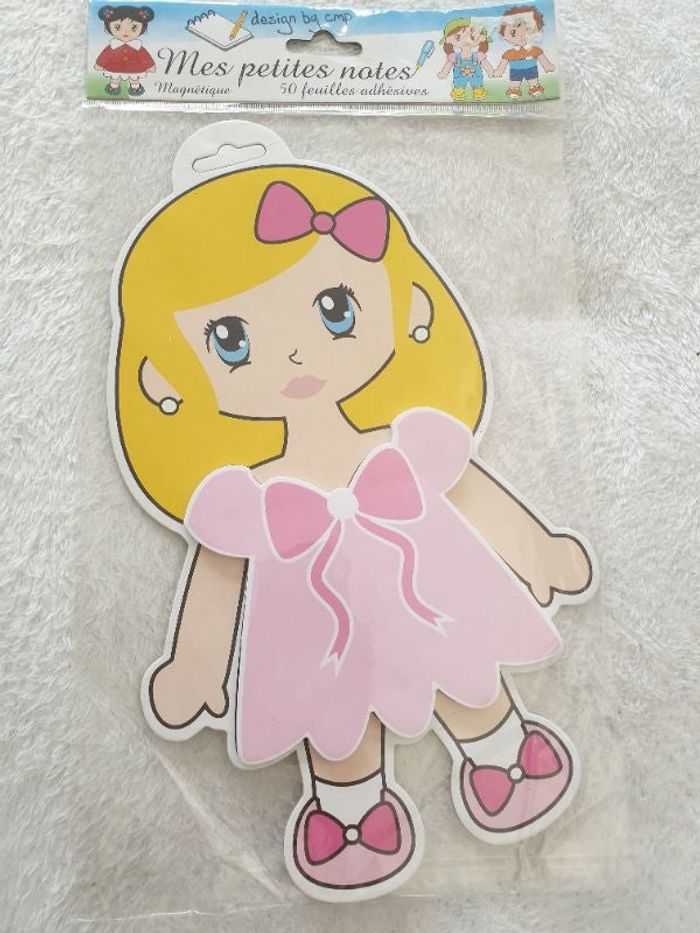 Bloc note neuf. Avec fille. Le bloc est la robe de la fille et comprend 50 feuilles adhésives . Le dos est aimanté. Neuf dans son emballage d'origine.