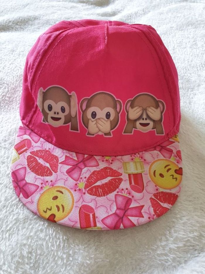 Casquette fille rose. Les 3 singes de la sagesse. Reglable derrière.