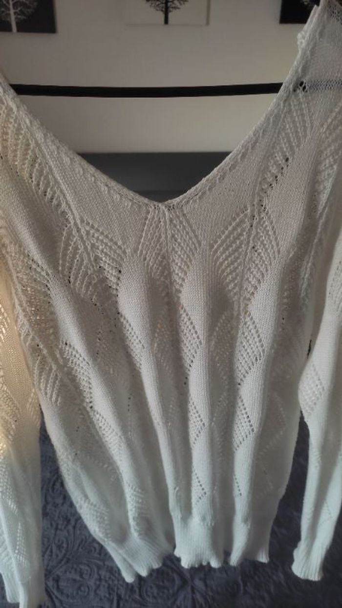 Pull blanc en tricot pointelle