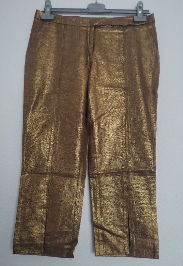 Pantacourt marron lamé or