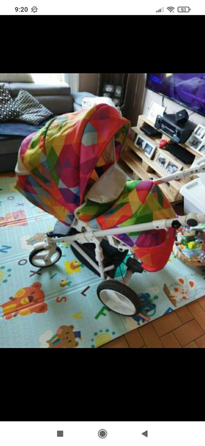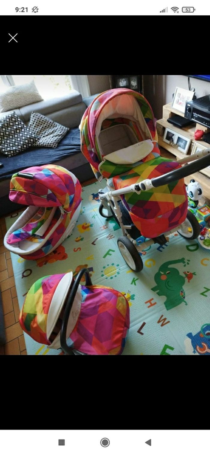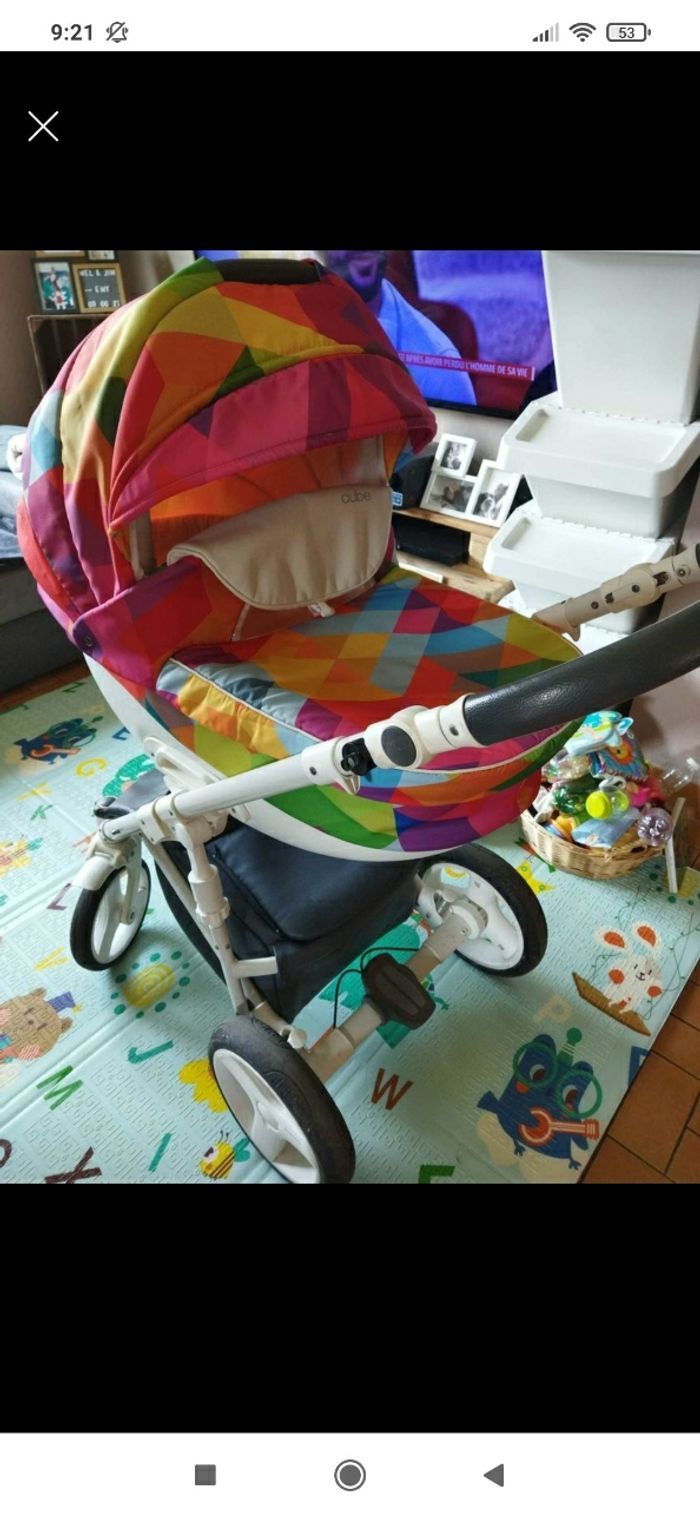 Poussette trio multicouleurs Nacelle coque et assise se positionne toutes côtés route ou cotes maman Poussette tout terrain avec suspension Habit de pluie
